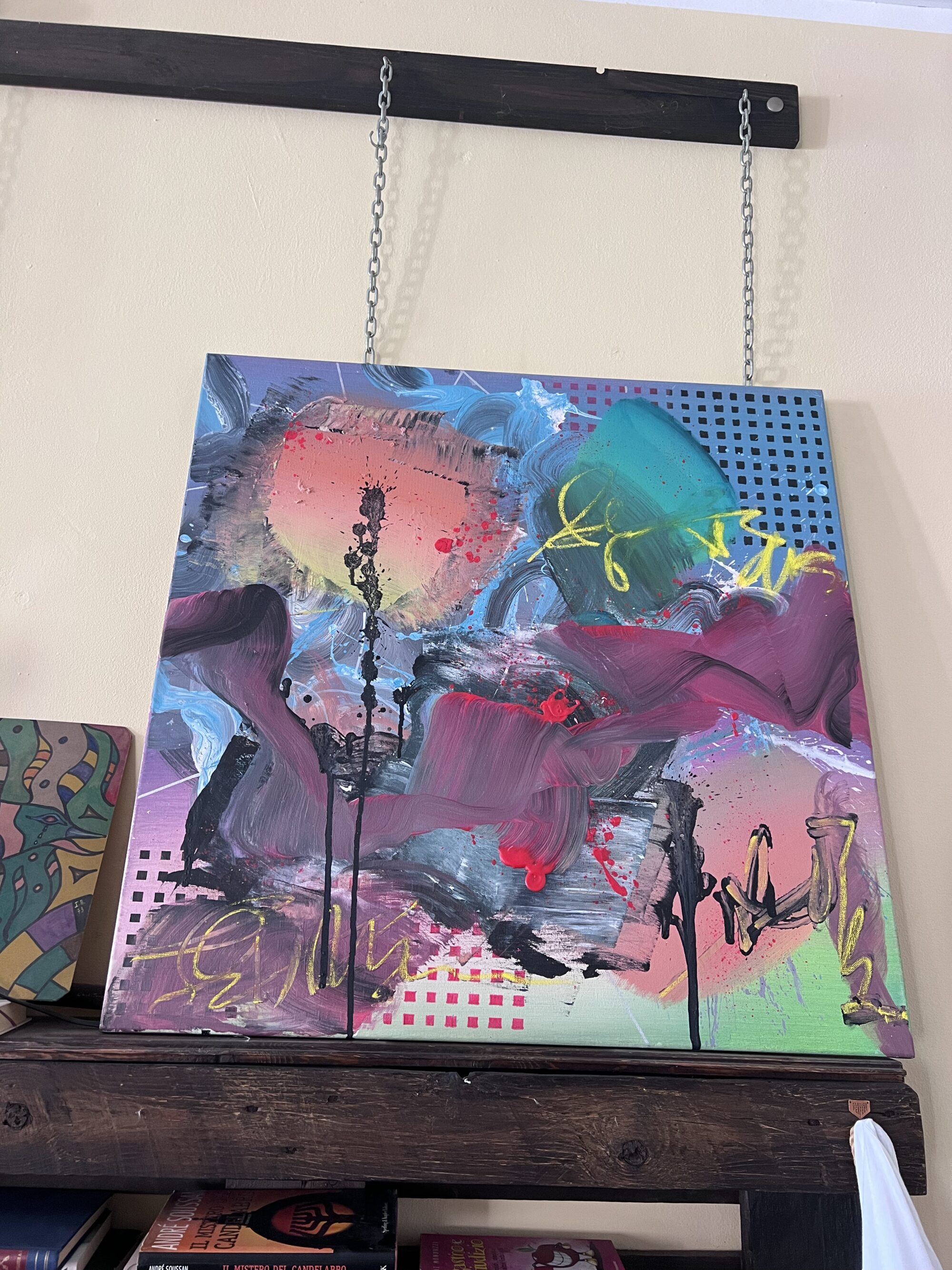 L’opera, è stata dona per contribuire la partecipazione alla Coppa Italia, realizzato con tecnica mista su tela, rappresenta un’esplosione di colori e movimento, evocando la passione, l’energia e la tensione che caratterizzano le grandi sfide.